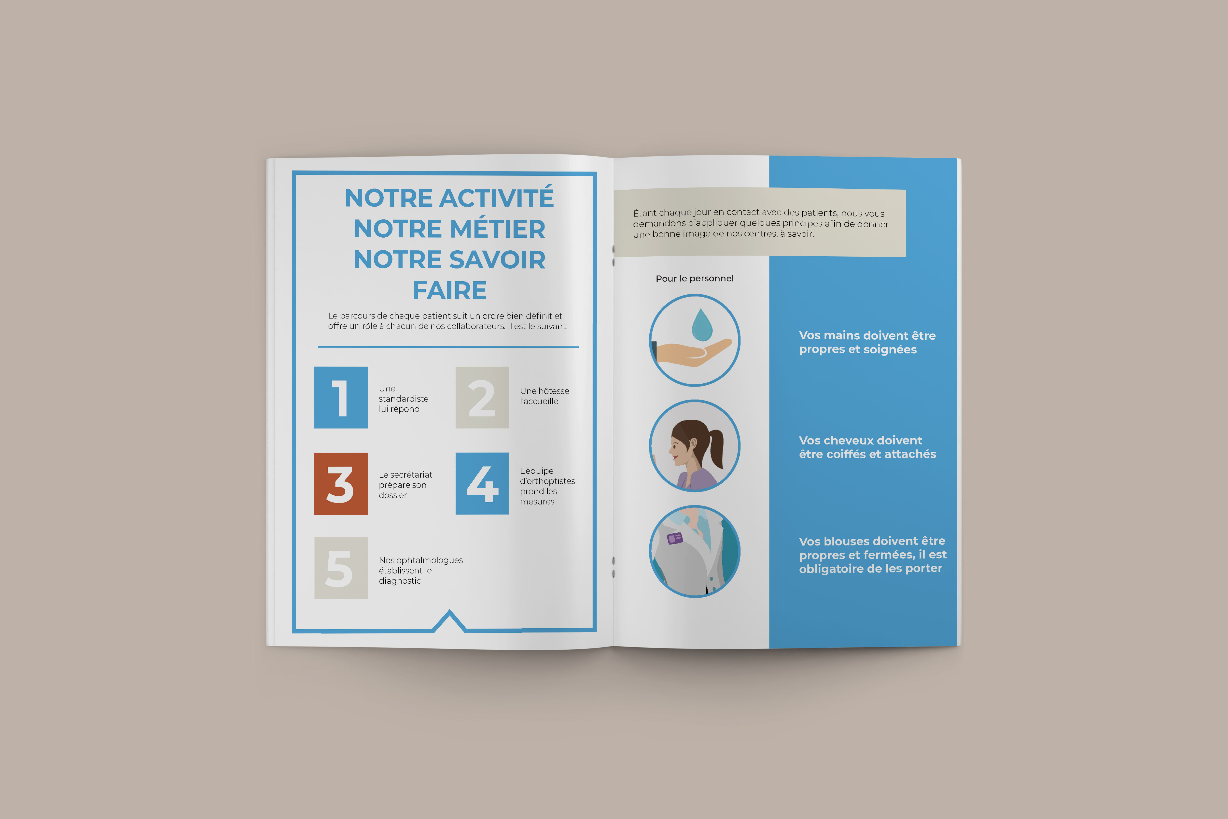 Le livret avait pour but de présenter la culture d'entreprise et les informations essentielles aux nouveaux employés, favorisant une intégration harmonieuse.J'ai également conçu un dossier attractif pour présenter les nouveaux centres d'Ophtalmologie Express, visant à susciter l'intérêt des partenaires et médecins. Le flyer,destinés aux patients, fournissaient des informations claires et précises sur le LASIK et la DMLA, en respectant les normes de communication dans le domaine de la santé.